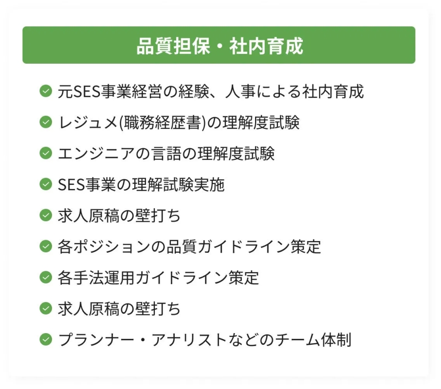 SES業界はビジネスモデルや働き方に特有の特性があり、一般的な採用ノウハウだけでは太刀打ちできない壁が存在します。GrowSESは、この業界に特化することで、より専門的で効果的な支援を提供しています。