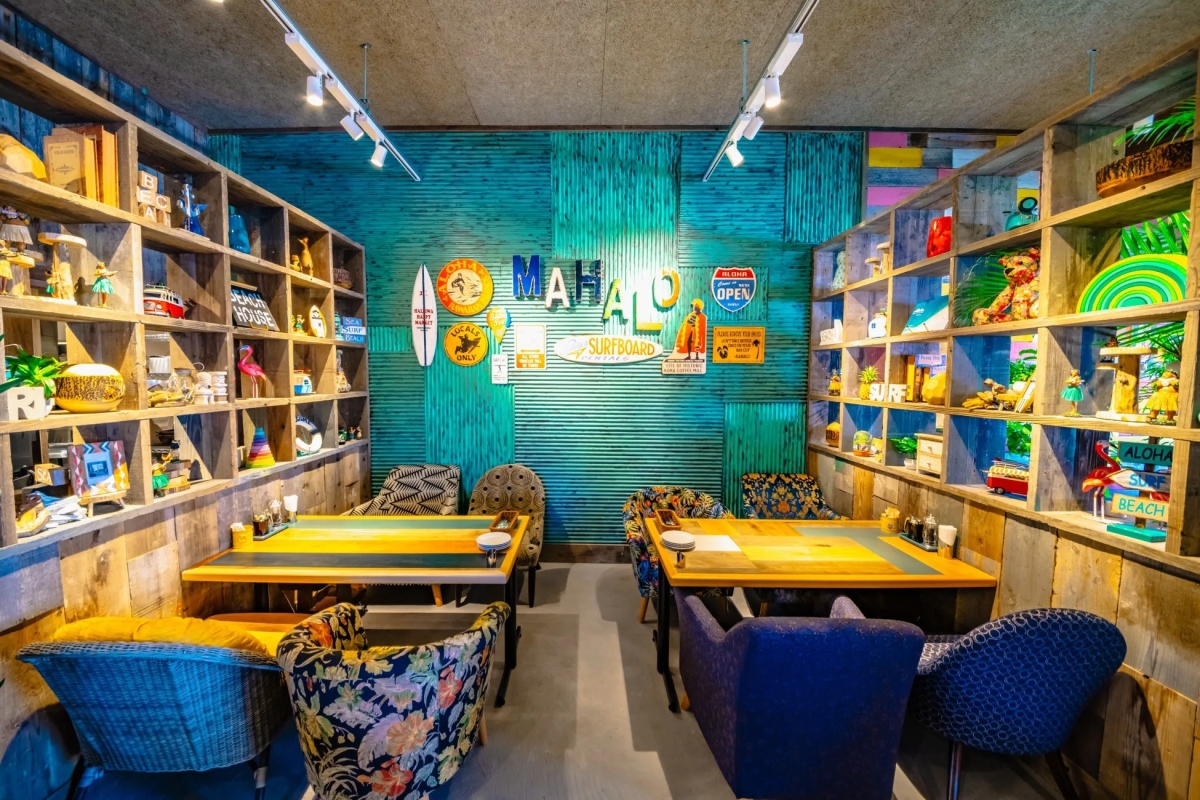 コナズ珈琲の店舗は、「100店舗100デザイン」を目指しているというこだわりぶりです。外観も内観も、店舗ごとに異なるハワイアン雑貨やサーフボード、遊び心のあるソファやテーブルが配され、まるでハワイのローカルなリビングにいるような雰囲気を演出してくれます。まさに「コナズ巡り」をしたくなるような、ワクワクする空間ではないでしょうか。